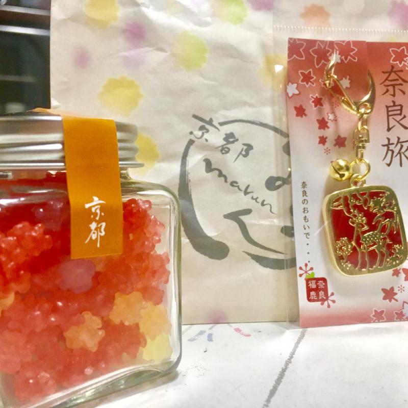 今日、いとこにあって、修学旅行のお土産を貰いましたー!金平糖と奈良の思い出ストラップ!!ストラップには鹿さんがいます!まさに、奈良ですね!!金平糖はもう、すっごい大好きだから、めっちゃ嬉しかったー!!素敵ないとこを持てて幸せ!!