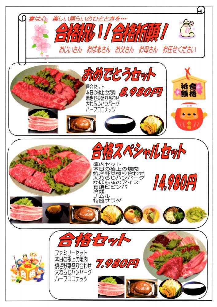 「今年は合格スペシャルセット無いの」と言うご要望にお応えし始めました!おじいちゃん、おばあさん、お父さん、お母さん、合格祝い!は是非 肉料理あんどうで喜ばれること間違いなしです(^・^)V
