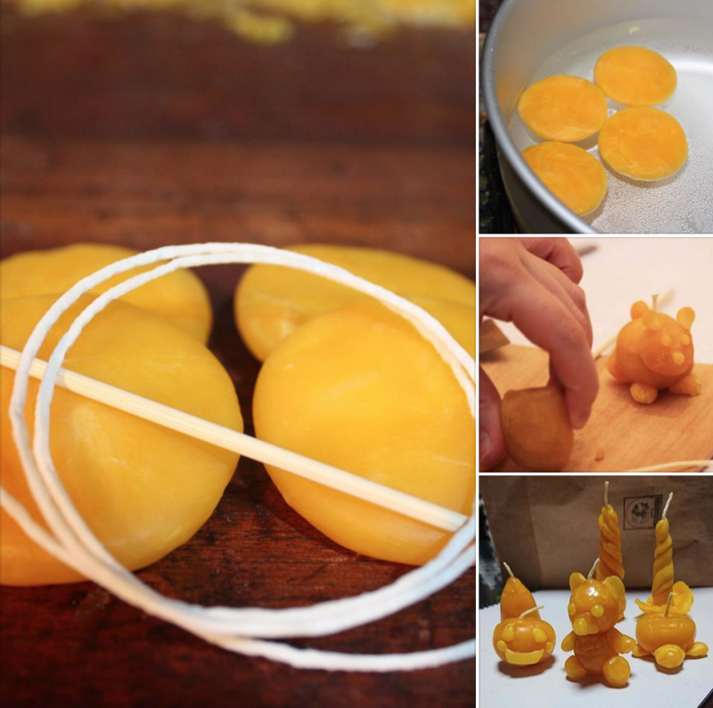 蜜ろうをお湯で温めるだけで粘土のように好きな形を作れます。練り済みなので、小さなお子さんでも簡単に作れますよ😉