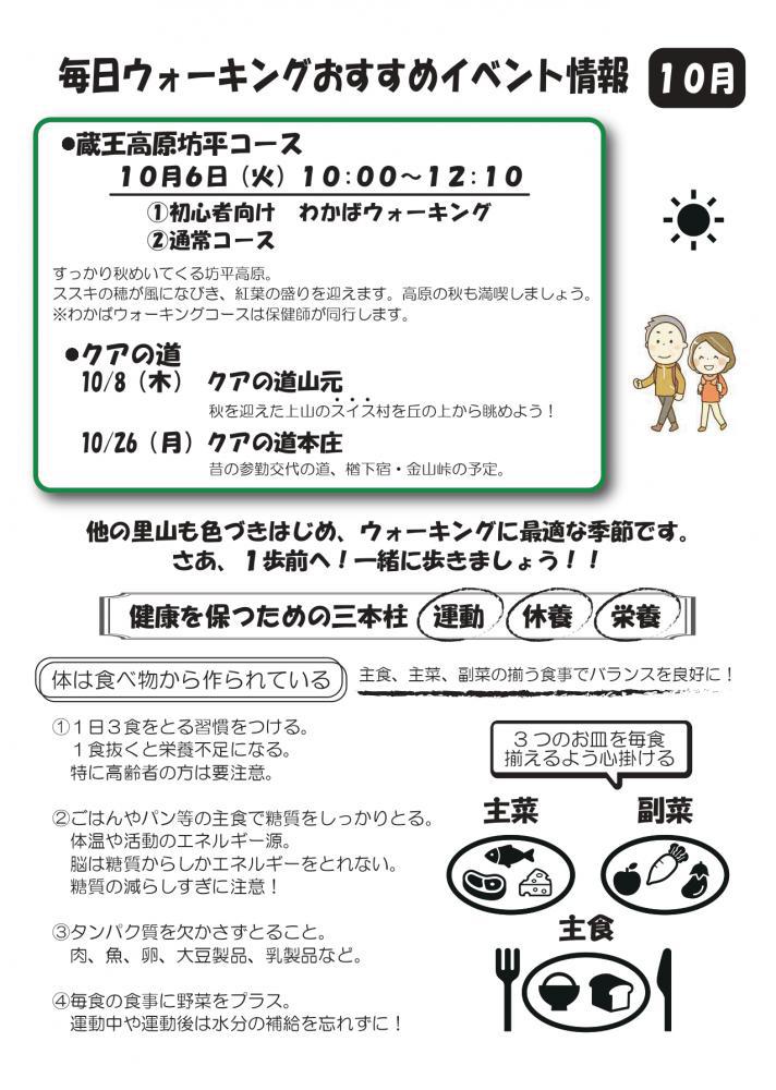 蔵王高原坊平の紅葉が見頃です!これから里山や市街地も色付いてきます。上山市の「毎日ウォーキング」では、紅葉の高原や里山を毎朝楽しく歩いていますよ♪綺麗な山の空気を吸ってリフレッシュしませんか。予約不要です。お気軽にご参加ください。 毎日ウォーキングカレンダー ダウンロードはこちら(上山市役所HP) ★毎日ウォーキング参加料★上山市民/参加料無料市外の方/1回おためし1,000円、回数券(4回分)3,000円、1ヶ月パス3,000円※回数券は分け合って使用可。ご家族ご友人やグループでのご参加もオススメです ★参加方法★事前の申し込みは不要です。当日、時間まで集合場所へお越しいただき、参加料をお支払いください。集まった方全員で歩きます。 ★ガイド★蔵王テラポイト協会 ★服装・持ち物★歩きやすい靴、動きやすい服、帽子マスク、うちわ、タオル、飲み物、ティッシュ等 ★新型コロナウイルス感染症予防のため★・自宅で体温を測定し、平熱か確認しましょう・マスクをつけて参加しましょう・天気や気温、参加者の体調によっては、コースは終了時間の変更がありますのでご了承ください ★お問合せ★上山市健康推進課 TEL.023-672-1111 内線197