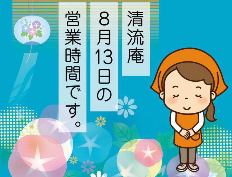 ●【清流庵】8月13日 (火) 閉店時間変更のお知らせ