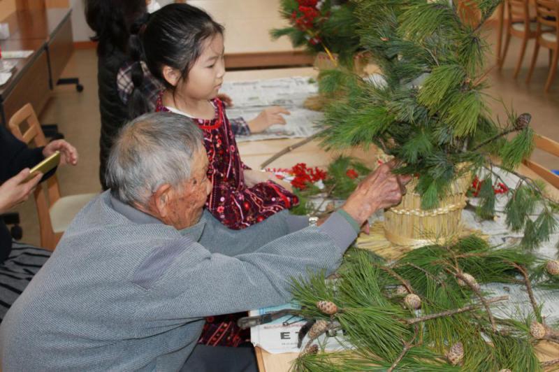 恒例となりました。門松作りを正月飾りの準備として、地元の高橋さんの指導を受けそれぞれ自分のセンスを取入れ素敵に作りました。