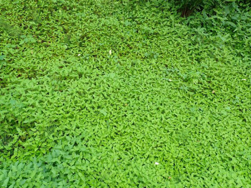 高熱続きの性で今まで映えなかった植物(ここではイラクサ仲間のミゾソバ)が異常までの密集にはびこっていました。