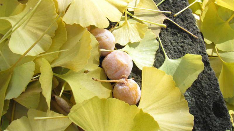 ●東正寺にある結城豊太郎翁の墓所に今年もたくさんの「ギンナンの実」が落ちていました 墓所一面にイチョウの葉が舞い降りその中に「ギンナンの実」がたくさん混じっており踏んでしまうと独特の異臭が漂ってきます でも料理のギンナンはもちもちとした食感で茶碗蒸しに入っているのは格別です 落ちている実を洗って干してその上で殻をとるのですから手間のかかる食べ物です 友人から大きな白菜をいただきました ふたり暮らしに持て余すほどの大きさですが ギンナンもそうですが作った人のご苦労に感謝しながらいただこうと思います