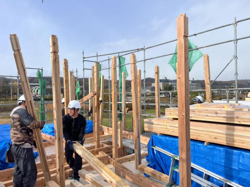 みなさんこんにちは先日、建方を行いました。木工事が始まりましたので、安全第一でケガのないよう現場管理をします。