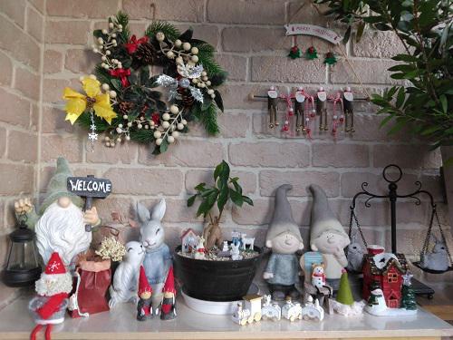 今日の天気は、雨が時々降ったりの変な一日でした。これから天気予報では雪だるまが多く寒さが続くようです!12月もあっという間に10日過ぎてしまいました。クリスマスもあっという間に終わって、正月飾りになりますが、少しでも気分を味わいたいので去年と同じように風除室に飾り付けしました。家にあるもの全員集合ですね(^^) (トップ写真)は金宝樹の脇にじーじが製作した大きなピンクの棚を取り込んでいるので上に板を置いて飾り付けしています。 ↓入って玄関正面脇に今年は「白のポインセチア」、白いのが珍しかったので買ってきました。 手前側に置いてあるものですが別に撮ってみたのが↓アンティークキャンドルスタンドを目立たないですが置いてみました。 玄関の中に飾っているものですが。 ↓去年購入したお気に入りのガラス瓶。花友Kちゃんからのお土産の焼き物も一緒に右側は以前プリザーブドフラワー教室で作ったもの。 ↓毎年登場!20年以上前の年期物『スノーマン』〜♪今年も飾って見ました。 おまけに・・・ もう庭の花も飾るものが無くなり、花ショップポピーさんからお買い得品の花を求めてきました。赤い実の枝物でクリスマスに合うねなんて選んだのですが合う花を探せなくてピンクのバラになりました。これで一本分、350円でお買い得で決めました。枝が硬くカット出来ずに苦労してこんな活け方に… 風除室には大物の金宝樹を取り込んでいるので満杯状態になっています・・・ 玄関は余計な物を置かないで、きれいに掃除しとくべきなんですが、ちょっとだけ我慢してもらって… ばーばの庭遊びも、もう終わりです・・・