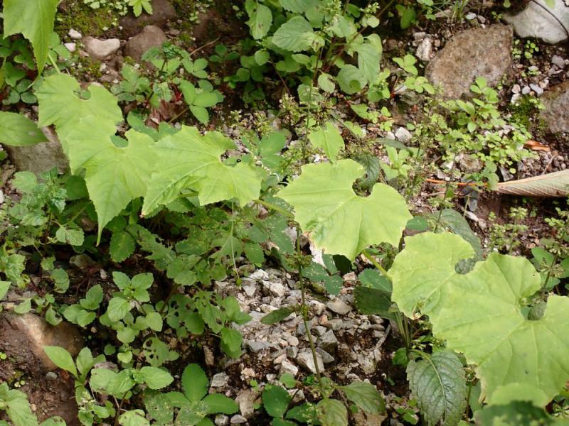 両性花株を持つミヤマニガウリの立派な葉ならびです。これなら十分に光合成出来ます。